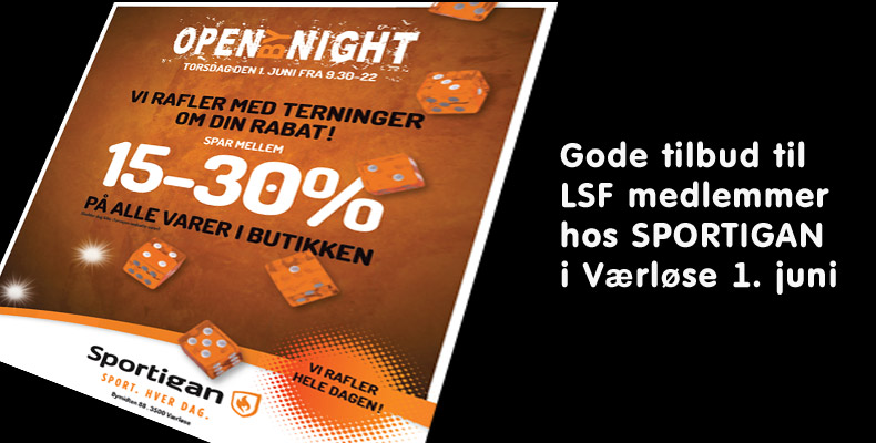 Torsdag den 1. juni holder vi aftenåben i Sportigan Værløse, med tilbudssalg hele dagen.