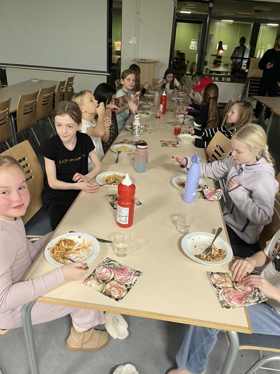 Aftenen havde mange ting på programmet. Vi startede med mad fra smørhuller, herefter fælles dans koreograferet af vores ungdomstræner. Efterfølgende fik vi hjemmebagte kager som en af vores søde forældre havde sørget for mens der blev dystet i jeopardy om dyr. Vi hyggede med guf til en film på storskærm og dem med krudt i måsen spillede stikbold.